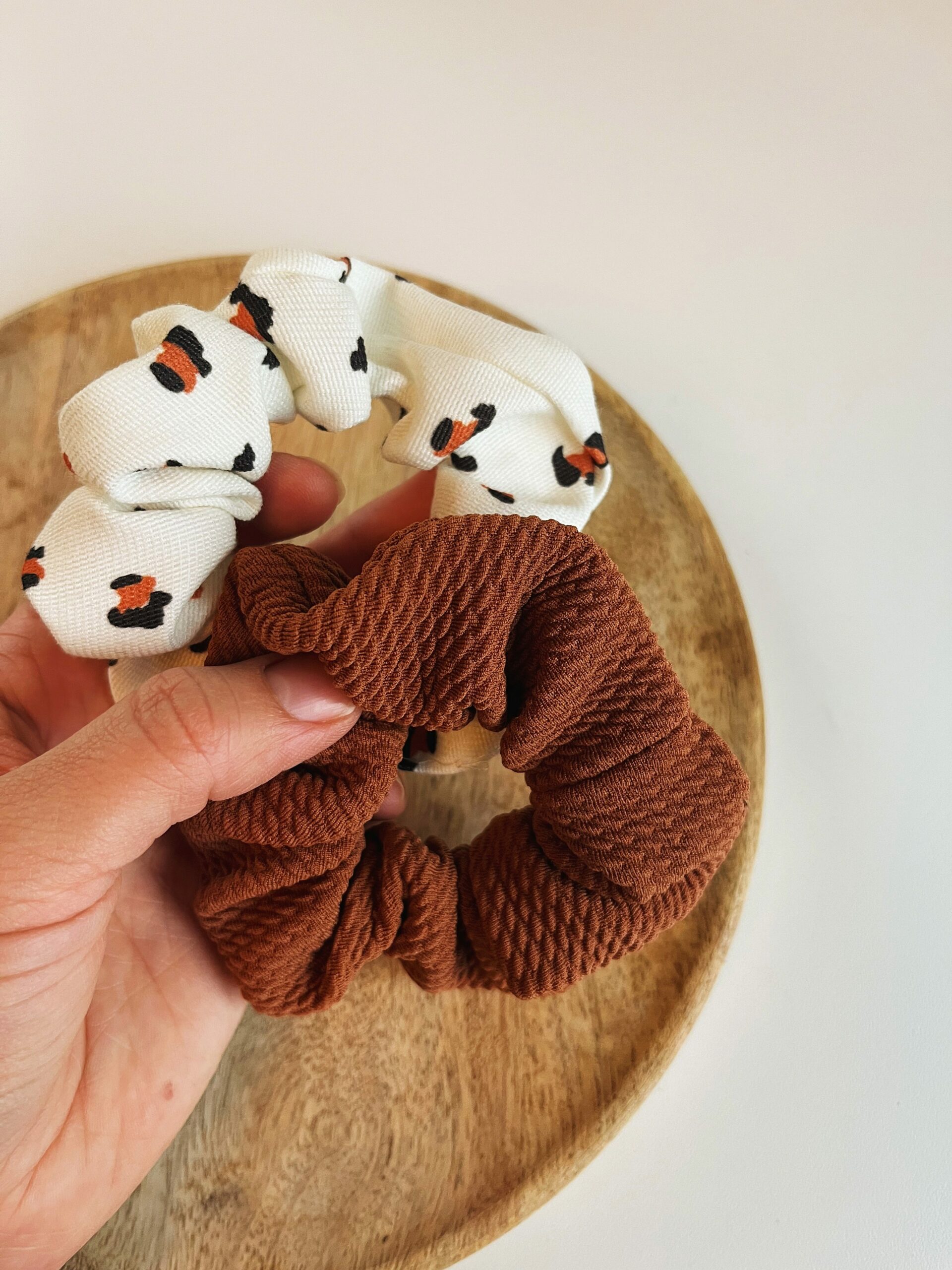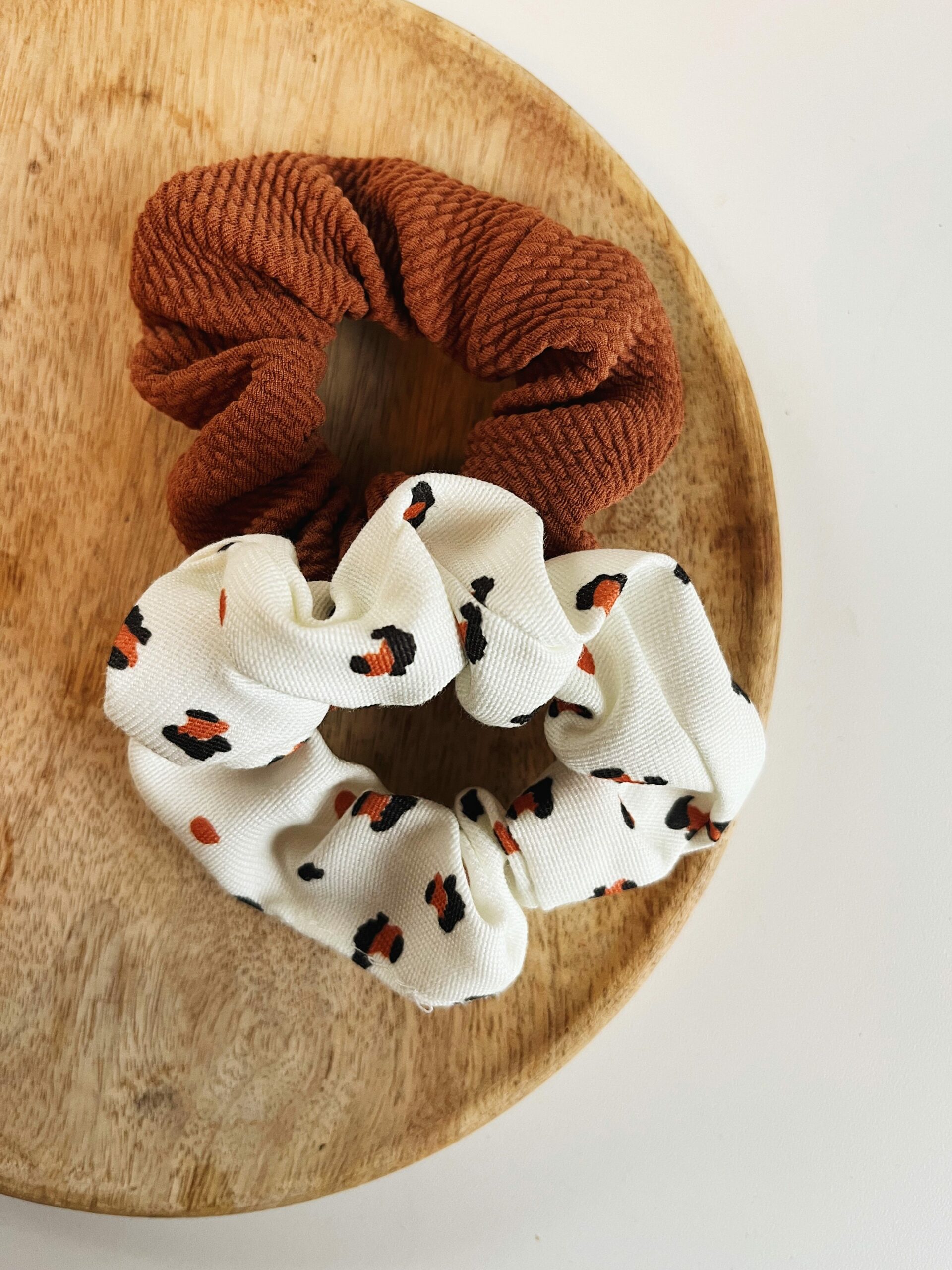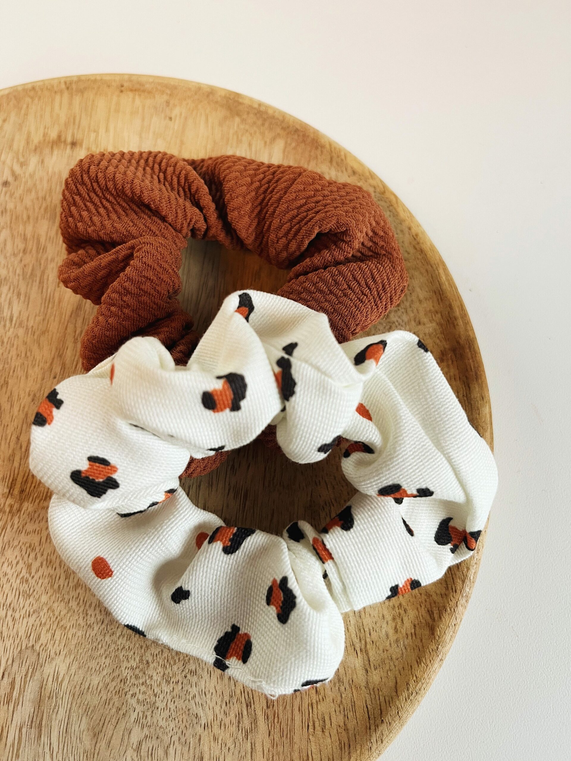 Deze scrunchies komen in duo. Gebruik ze beiden om je bun of staart voor extra volume van de scrunchies. Zijn ze meer zichtbaar. Of gebruik ze apart van elkaar en wissel lekker af! Fijne warme kleurtjes, sterk en gemaakt met kwaliteit.
