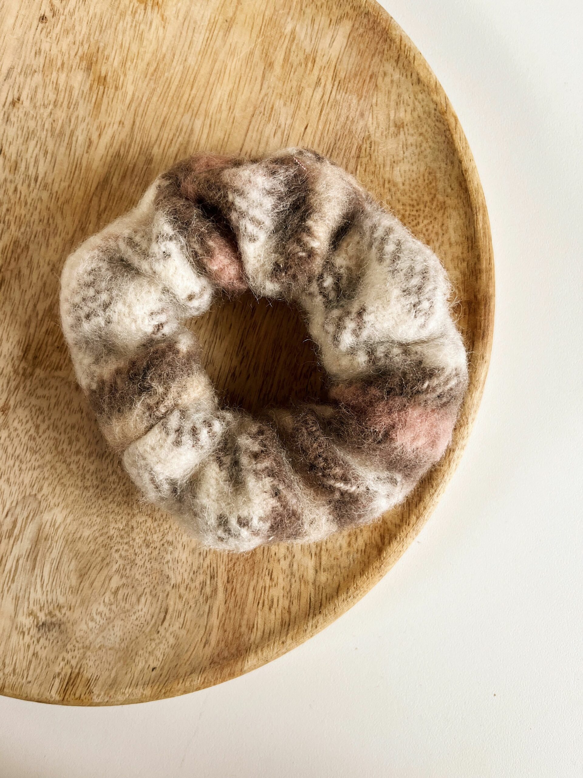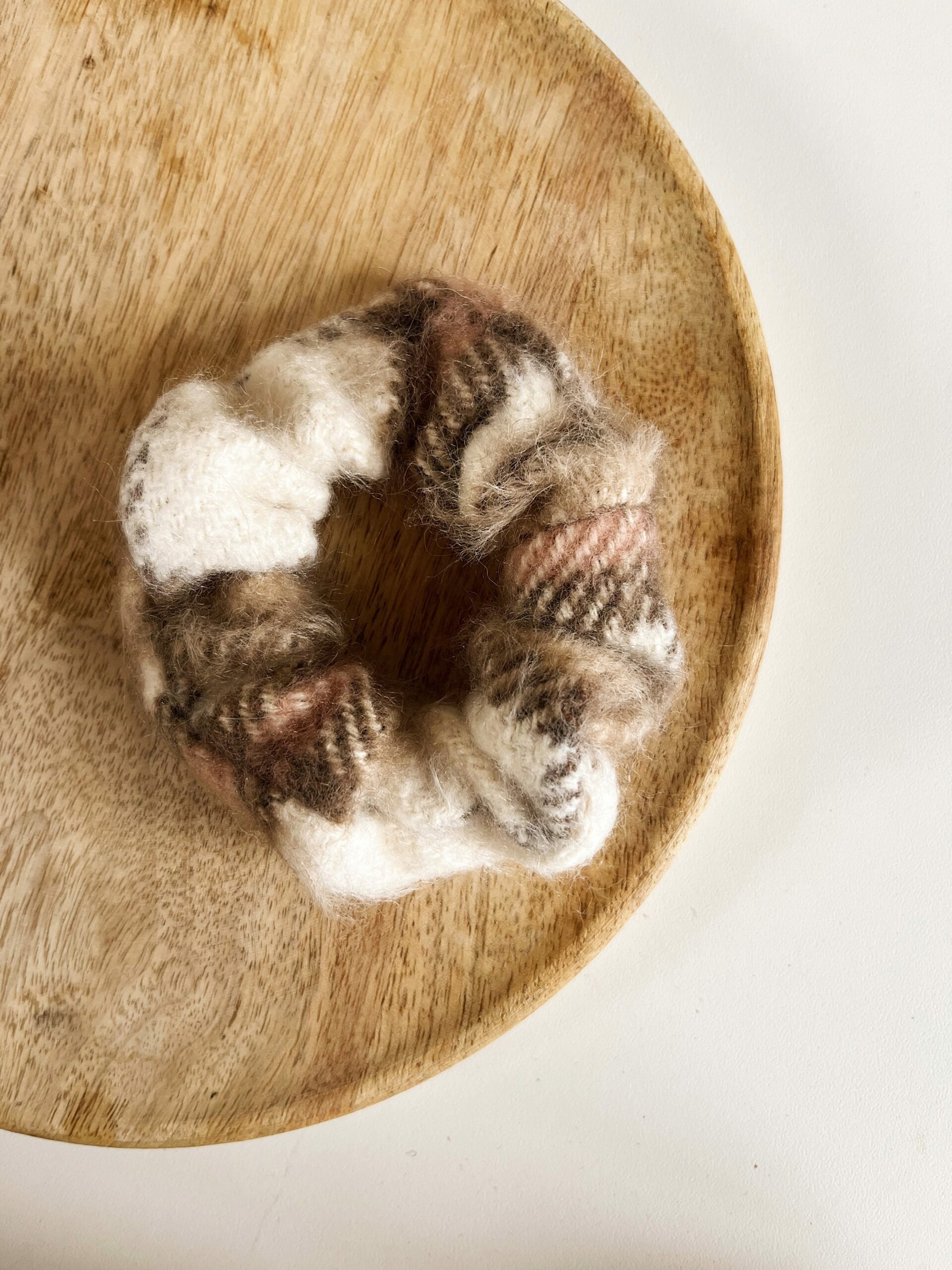 Deze wollen scrunchies zijn een heerlijk winters item en een fijn detail aan je staart of bun. De scrunchie winter wool is geschikt voor gemiddeld haar tot dik haar en kun je dan 1 a 2 keer omslaan. Heb je dunner haar? Dan sla je de scrunchie vaker om! De wollen stof is wat stug en voor extra stevigheid van je bun of staart adviseer ik er een stevig elastiek onder te dragen. De scrunchie winter wool leent zich goed voor een half omhoog knotje!