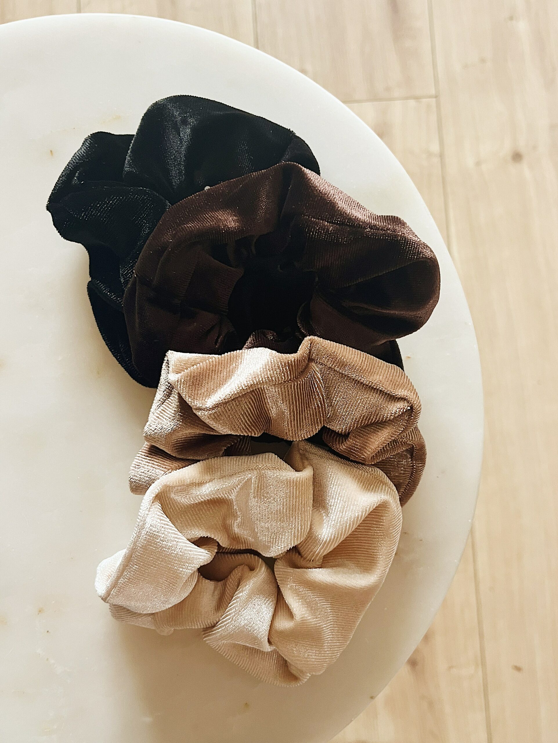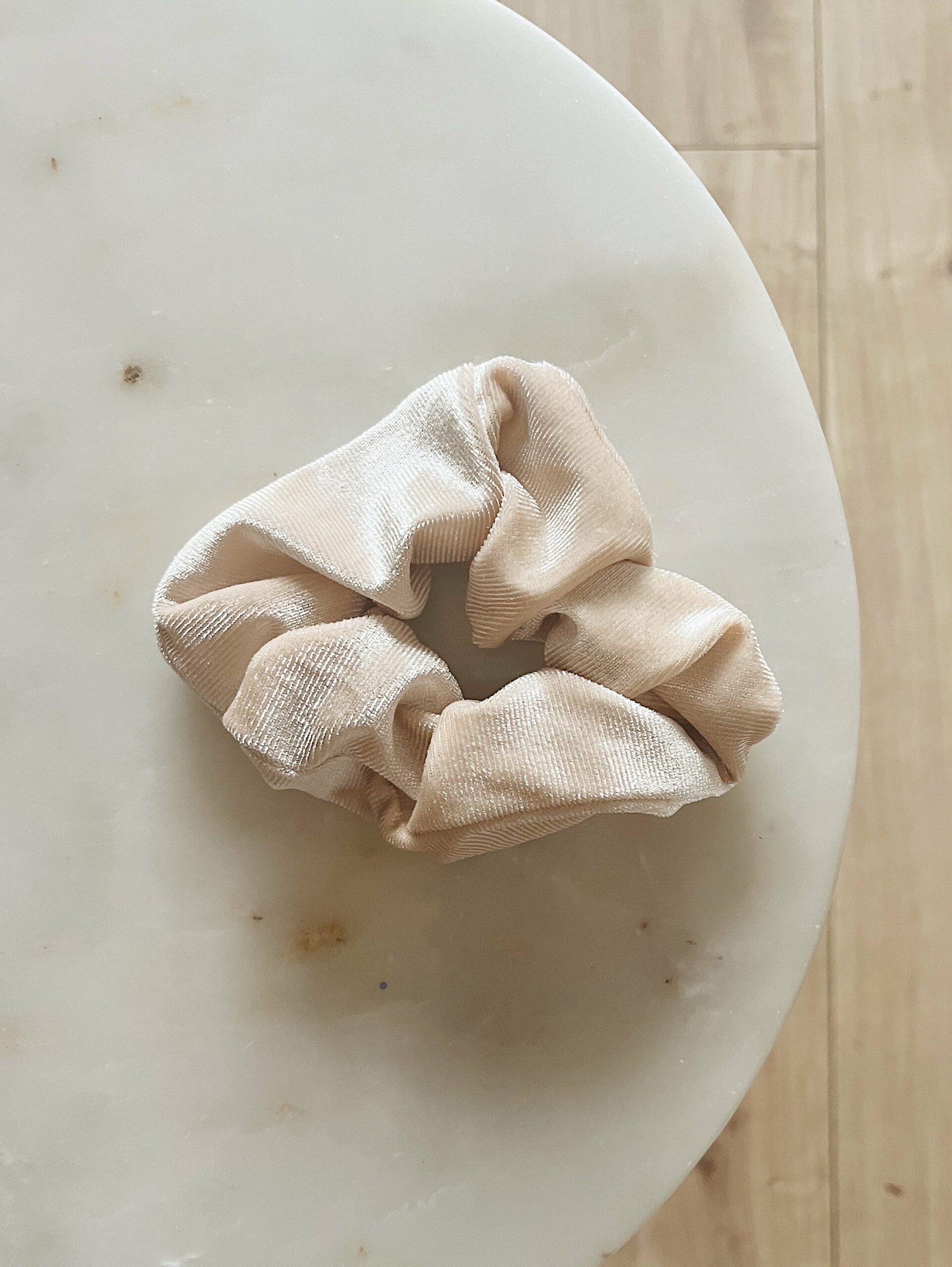 Ultra zachte en elegante velvet scrunchie – maat M. Met een sterk elastiek, maar zacht voor het haar. Ideaal om je bun of ponytail een mooie touch te geven!